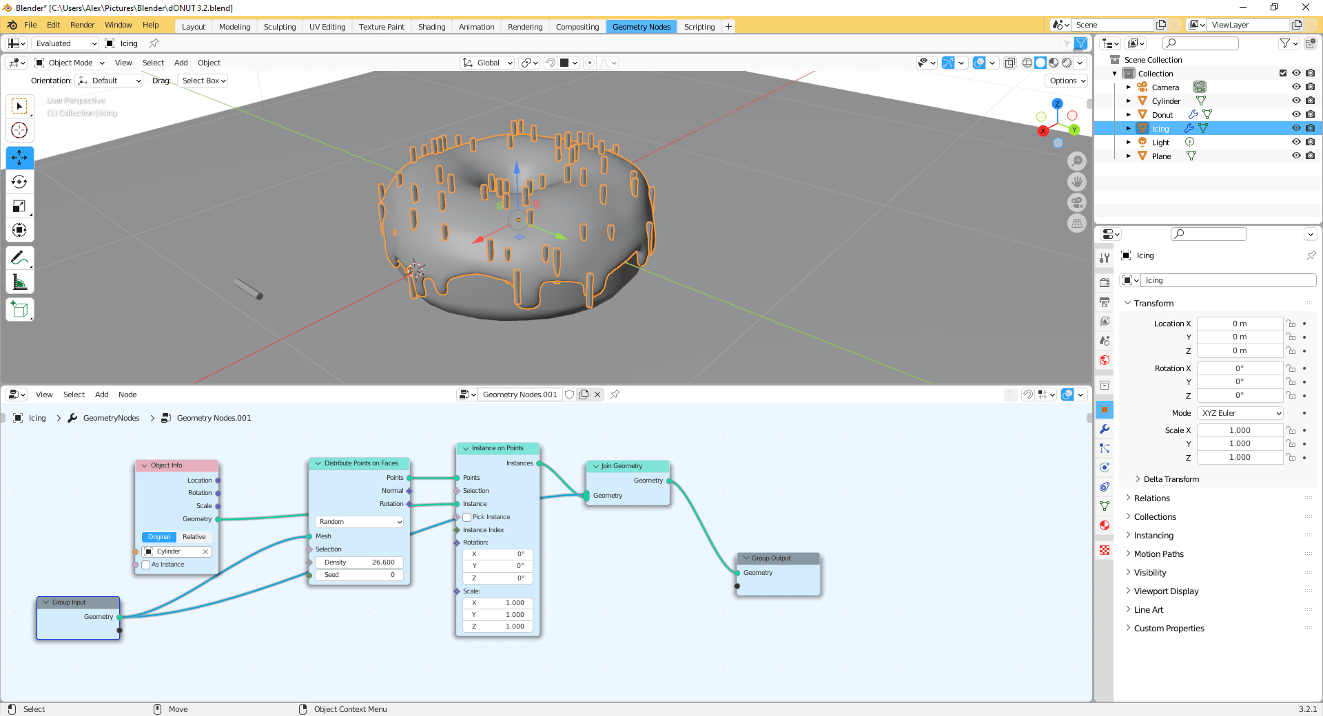Geometry nodes can make things look more natural (see how the sprinkles turned out below).